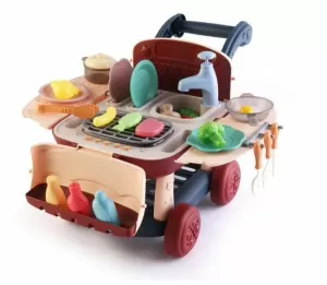 COCINITA CON LUCES Y CIRCUITO DE AGUA Y CONVERTIBLE EN CARRITO DE COMPRA