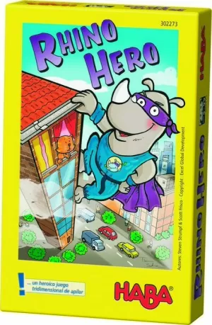 Rhino Hero es un superhéroe bestialmente aventurero, le encanta escalar edificios para observar desde las alturas si algo va mal. Es tan fuerte como un león y listo como un delfín, pero también es pesado como un rinoceronte. Por eso tiene que tener mucho cuidado, ya que hasta los edificios más robustos tambalean a su paso.